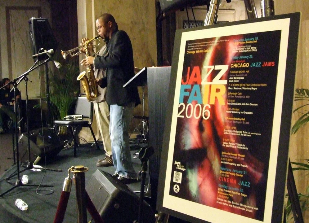 This mid-winter festival began in 1979 as a way to bring together members of Chicago’s jazz ecosystem, including jazz organizations, school programs, radio stations, record labels and visual artists and to showcase Chicago’s jazz musicians. In 2003, due to cost considerations we were forced to consider canceling the event. Citing its long history and cultural importance to the city, the City of Chicago offered to partner with the Jazz Institute to present the annual showcase as a free public event, which it remained until its final year in 2008.